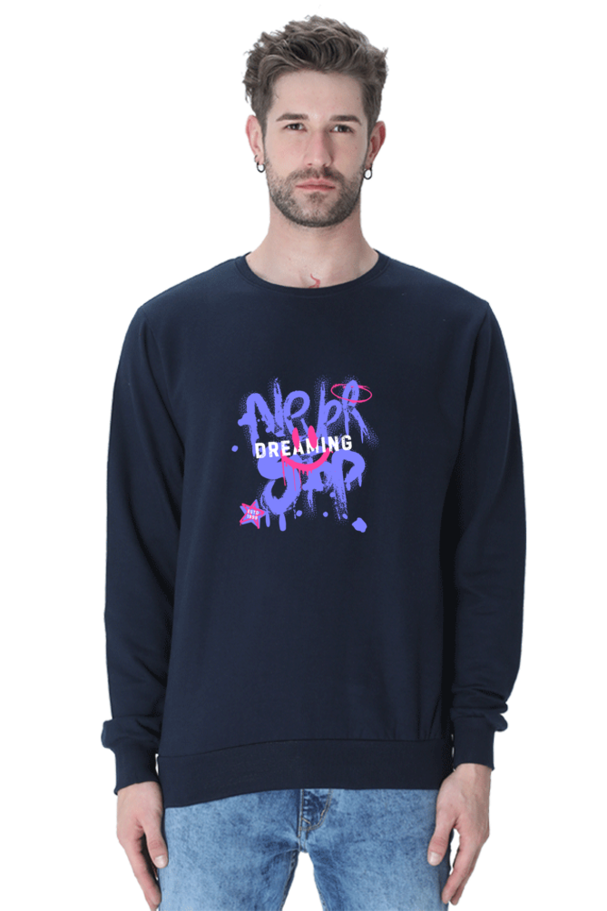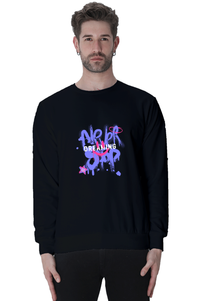 Printed sweatshirt has a round neck, long sleeves, straight hem